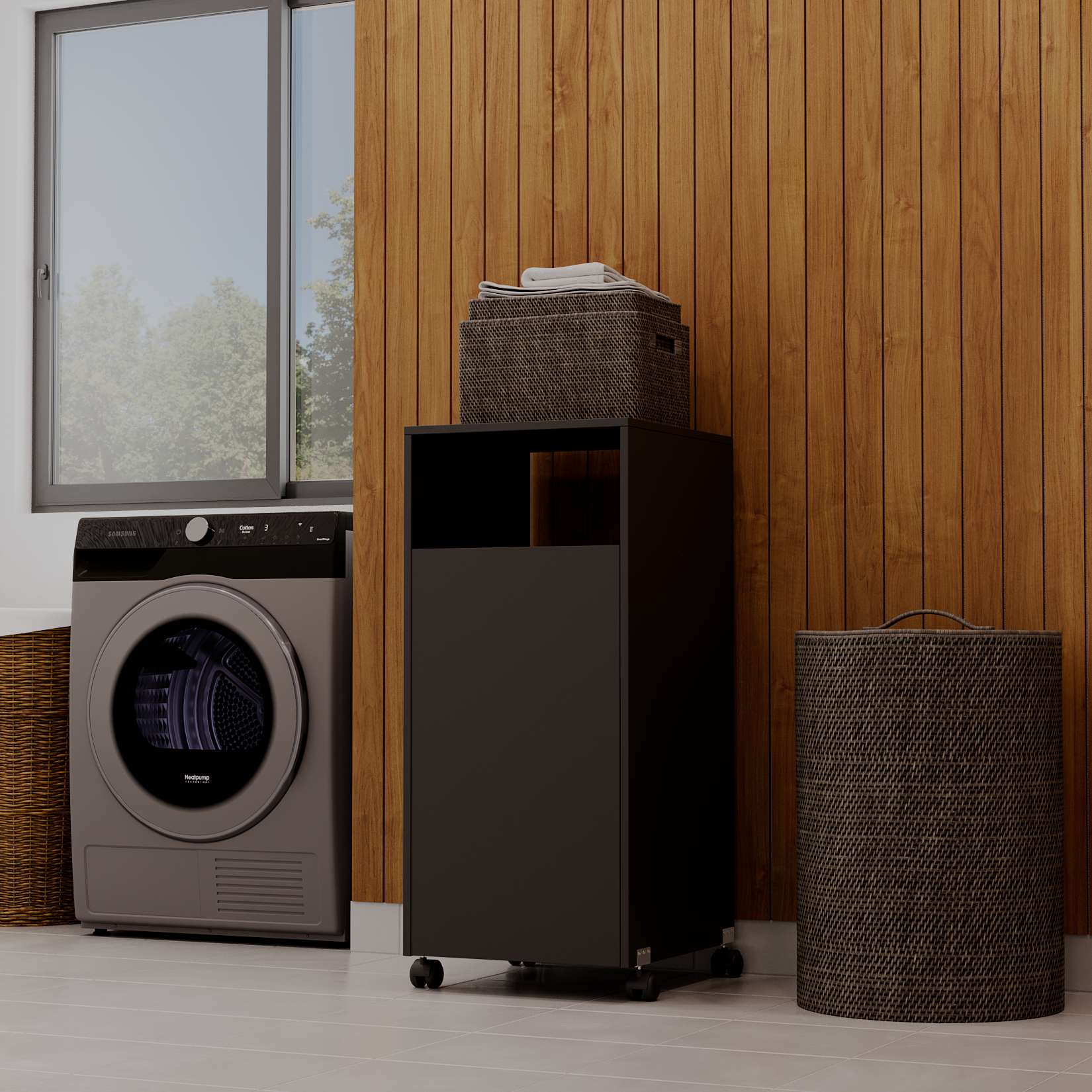 O Armário Organizador Cesto De Roupas Para Lavanderia com Rodinha Multiuso Preto é a solução perfeita para a funcionalidade e organização, eficiente da sua lavanderia!