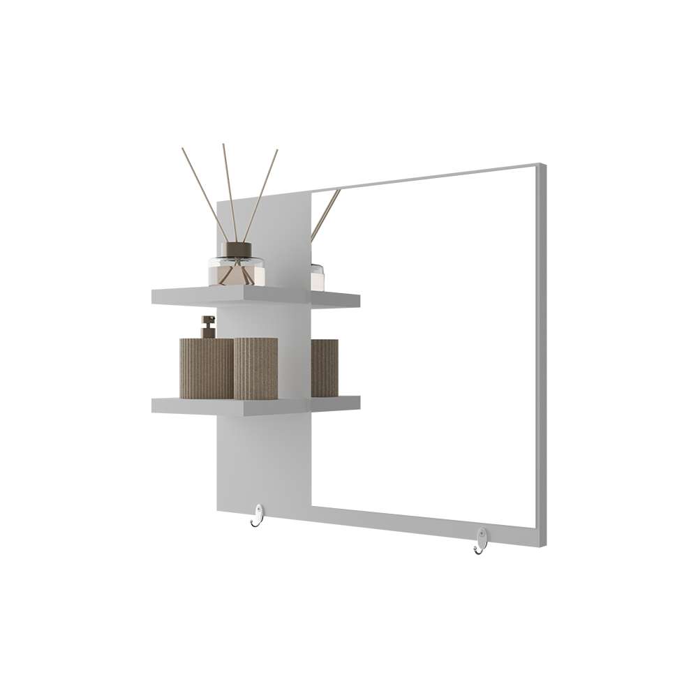 A espelheira Lince possui 2 prateleiras externas para guardar e organizar os itens de higiene pessoal e acessórios do seu banheiro, além de acompanhar um espelho amplo proporcionando um uso prático e agradável.