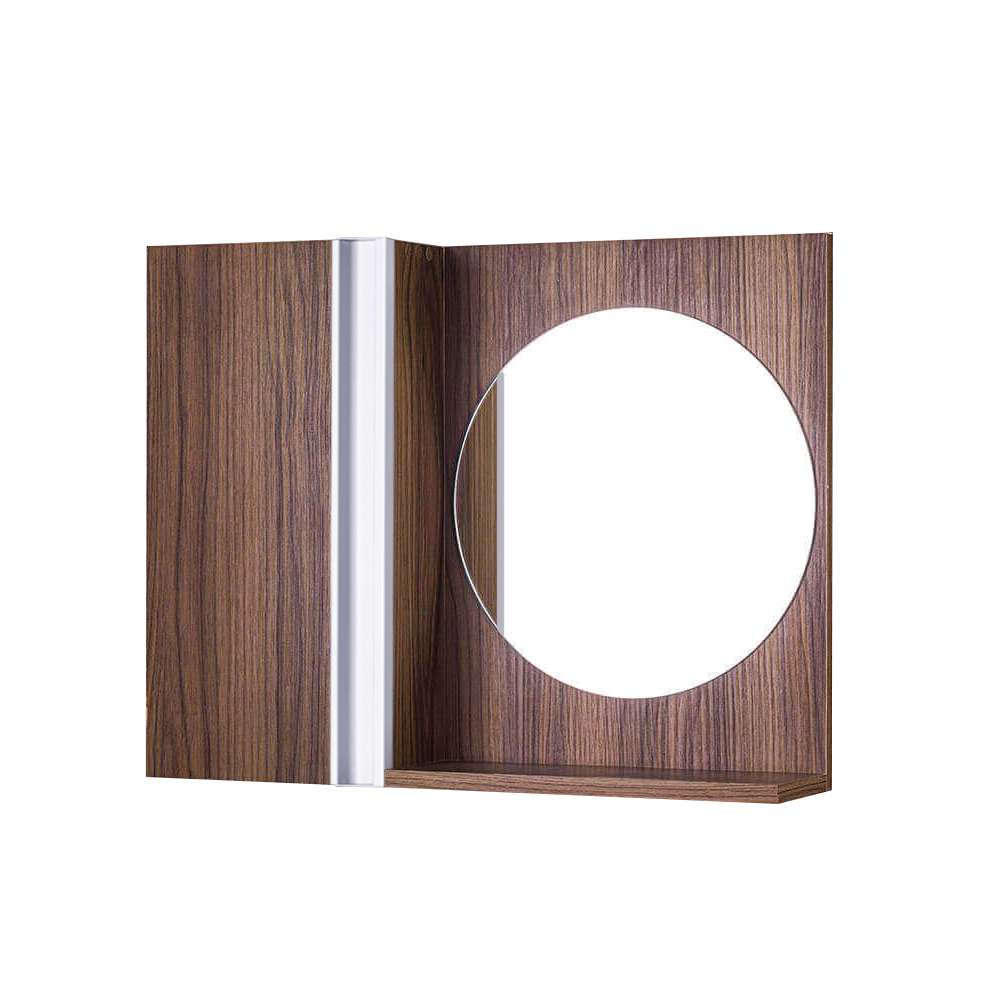 Armário para Banheiro com Espelho Redondo Nogal Barra Vertical. Já vem montado, pronto para colocar na parede. É só abrir a caixa e instalar em seu banheiro. Acompanha 2 parafusos com buchas para instalar na parede.