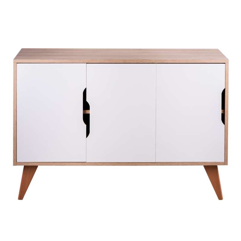 Balcão Buffet Retrô com 3 Portas Carvalho e Branco
