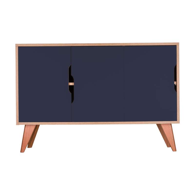 Buffet Aparador com 3 Portas Murano Carvalho e Azul Marinho