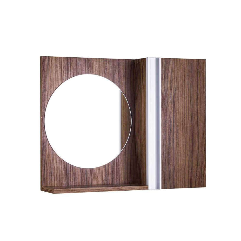 Espelho Redondo para Banheiro com Armário Nogal com Barra Vertical. Já vem montado, pronto para colocar na parede. É só abrir a caixa e instalar em seu banheiro. Acompanha 2 parafusos com buchas para instalar na parede.