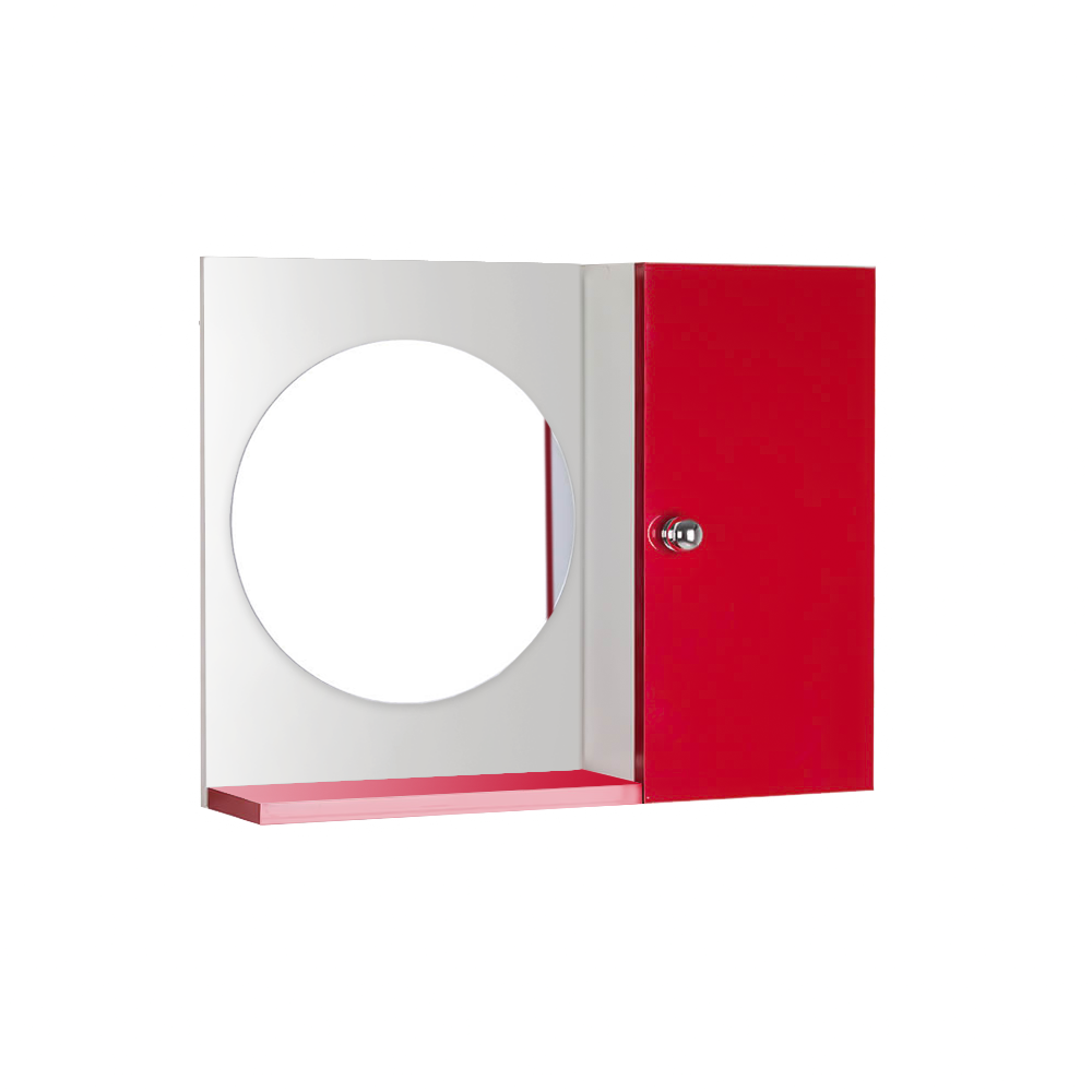 Espelho Redondo para Banheiro com Armário Vermelho é a escolha perfeita para quem busca elegância, sofisticação e praticidade para seu banheiro.