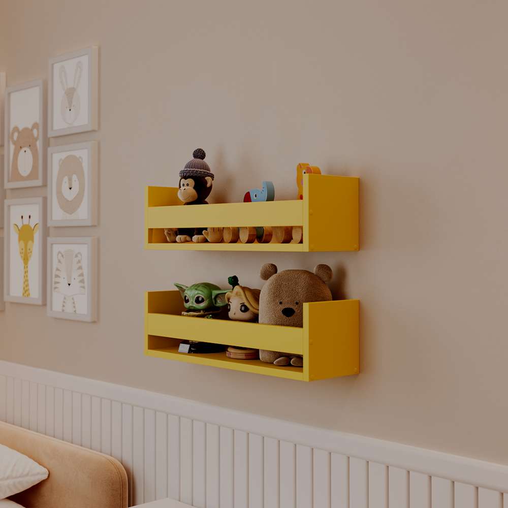 A Kit 2 Prateleiras Porta Brinquedos Amarela 70 x 12cm Suporte Invisivel é perfeita para tornar o seu ambiente mais criativo e moderno.