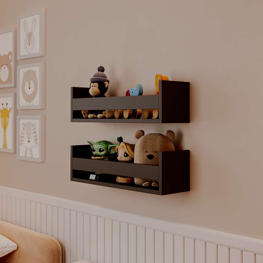 Kit 2 Prateleiras Porta Brinquedos Preta 60 x 12cm Suporte Invisivel é perfeita para tornar o seu ambiente mais criativo e moderno.