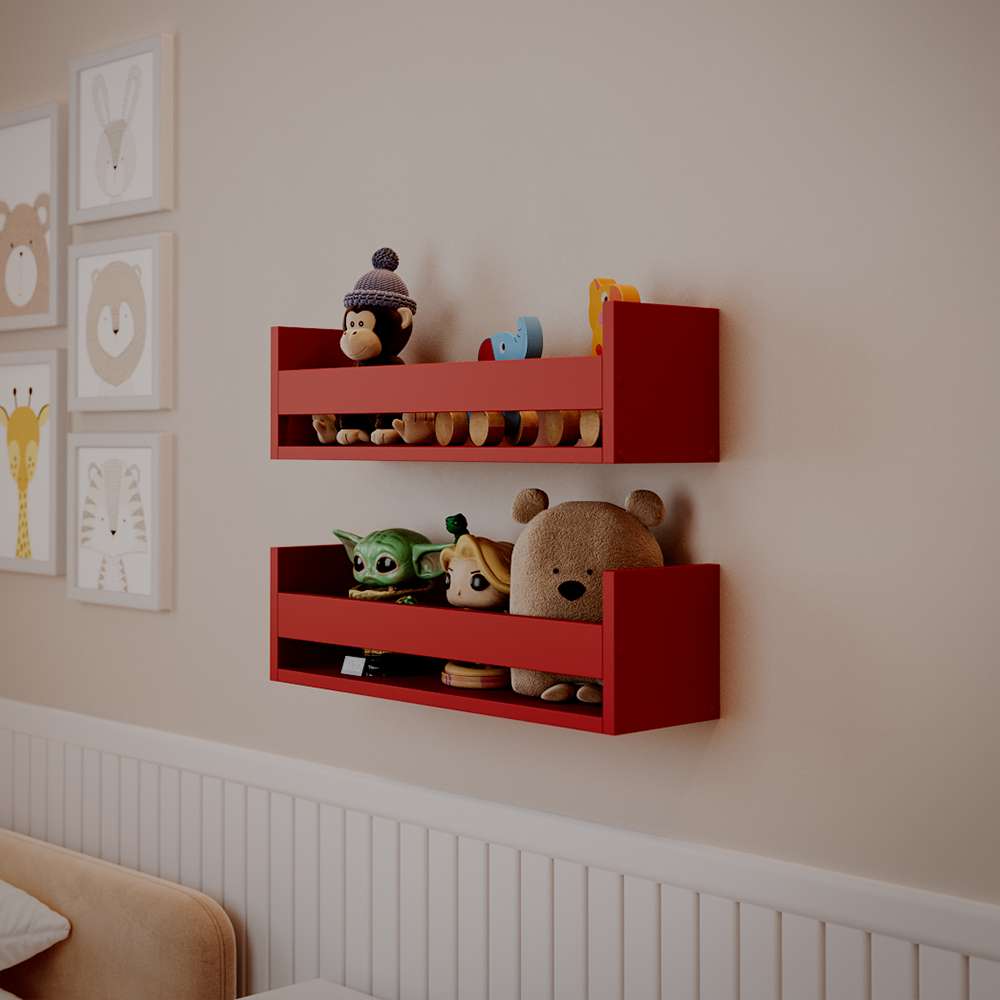 Kit 2 Prateleiras Porta Brinquedos Vermelha 60 x 12cm Suporte Invisivel é perfeita para tornar o seu ambiente mais criativo e moderno.
