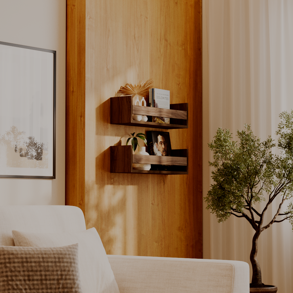 Kit 2 Prateleiras Porta Livros Nogal 60 x 12cm Suporte Invisivel é perfeita para tornar o seu ambiente mais criativo e moderno.