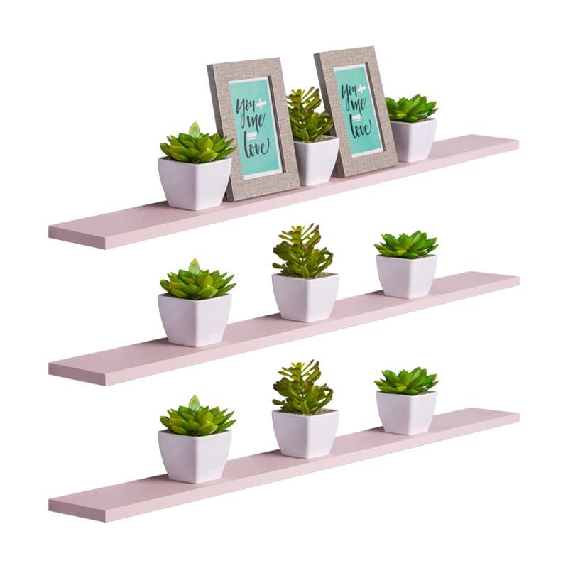 Kit 3 Prateleiras 80 x 15cm Rosa Claro Suporte Invisível. A prateleira Crie Fácil foi desenvolvida pensando em deixar o seu ambiente mais organizado e criativo de forma prática e simples.