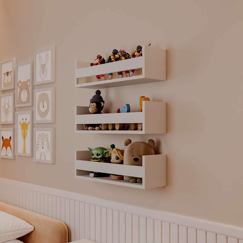 A Kit 3 Prateleiras Porta Brinquedos Branca 60 x 12cm Suporte Invisivel é perfeita para tornar o seu ambiente mais criativo e moderno.