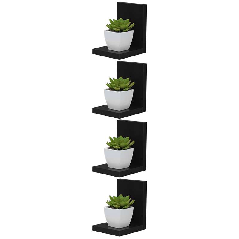 O Kit 4 Prateleiras em L 15 x 12cm Preto é a escolha perfeita para completar aquele cantinho especial da sua casa. Estas prateleiras pequenas pretas podem ser decoradas com pequenos vasos de plantas, estatuetas, porta retratos e outros objetos decorativos. Perfeitas para usar como porta troféus em quarto infantil. Muito versáteis, podem ser usadas para decoração de sala, quarto, escritório e até cozinha.