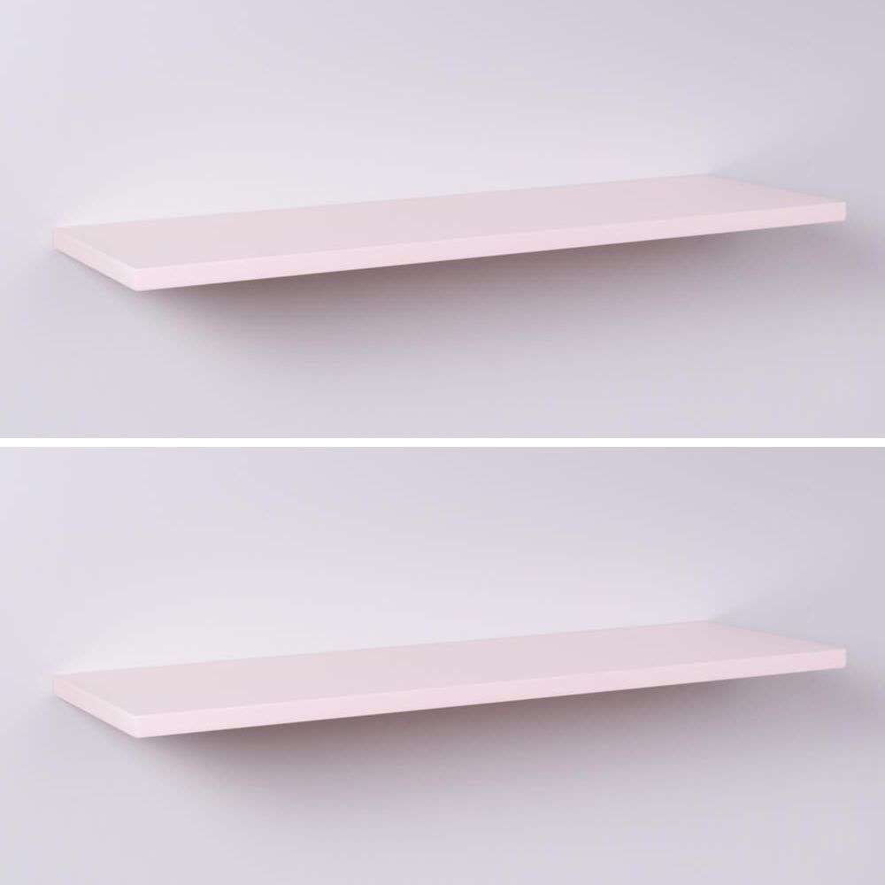 Kit com 2 Prateleiras de Madeira na cor Rosa Bebê 60cm x 20cm x 1,5xm Com Suporte de Embutir (Invisível) .