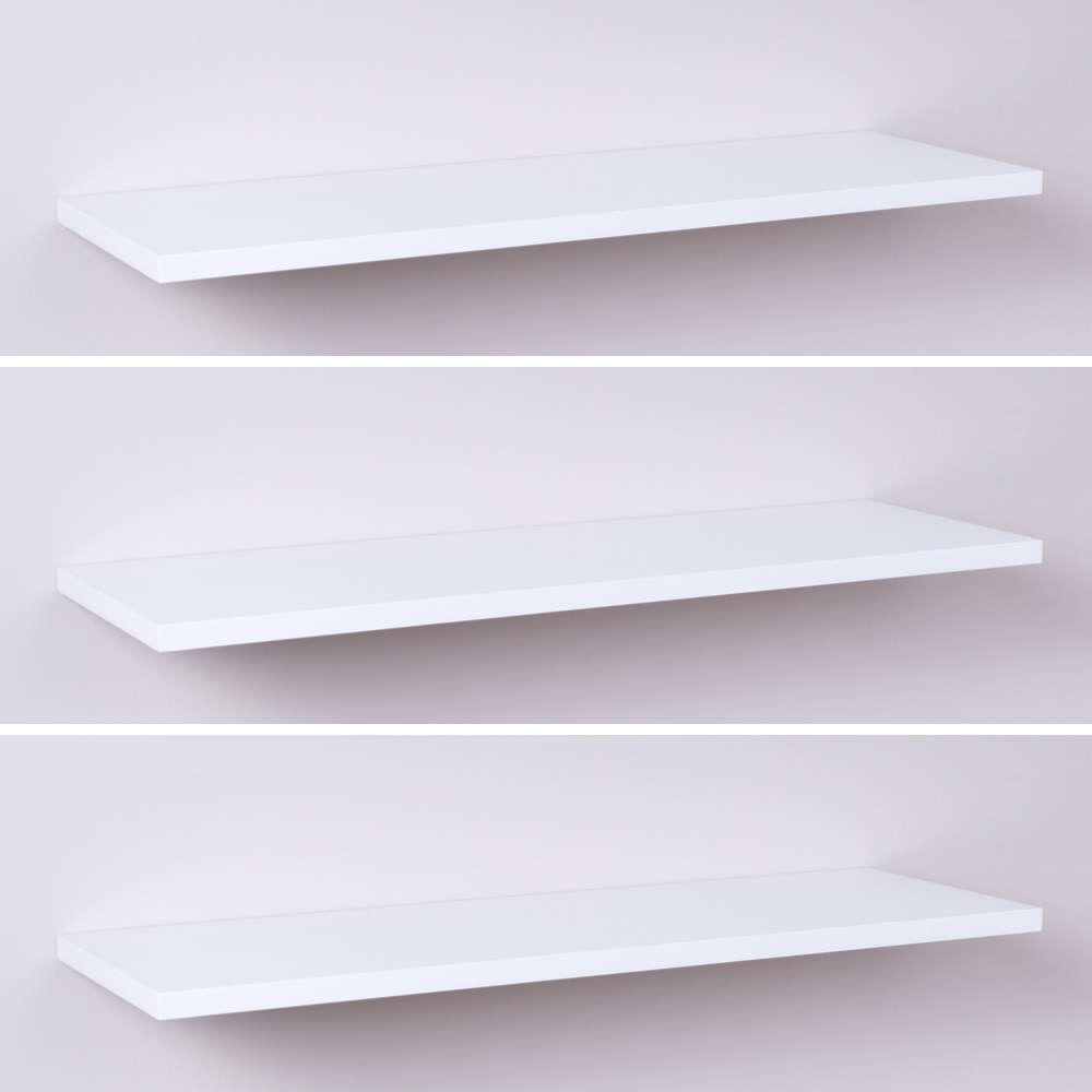 Kit com 3 Prateleiras de Madeira na cor Branco 40cm x 10cm x 1,5xm Com Suporte de Embutir (Invisível) .