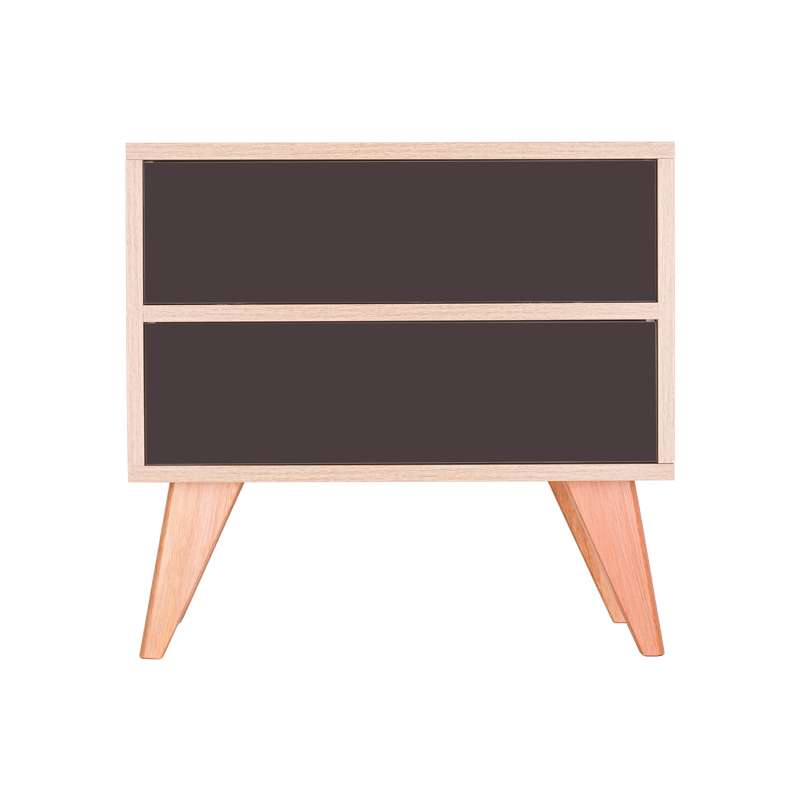 Mesa de Cabeceira Retrô Modelo Bréscia na cor Carvalho Treviso (Madeira Clara) e portas Grafite traz organização com estilo para o seu quarto. Possui lindos pés torneados em diagonal.