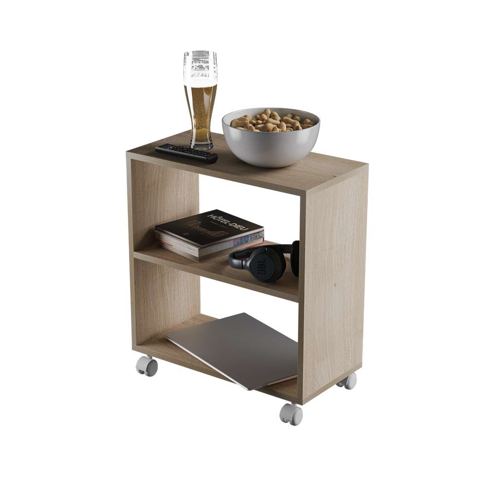 Mesinha Lateral de Apoio Carvalho Sala Quarto 50 x 47 x 25cm com rodinhas