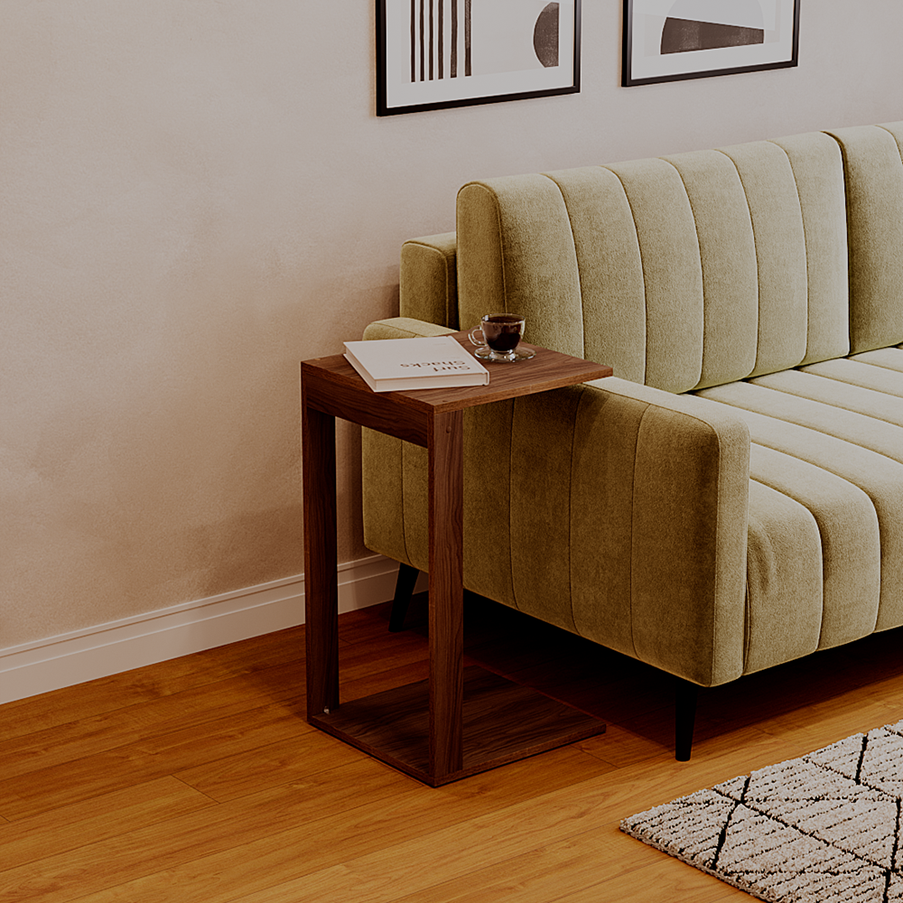 Com design compacto, esta mesinha é perfeita para otimizar o ambiente, oferecendo um suporte versátil para livros, bebidas, laptops e outros itens essenciais do dia a dia.