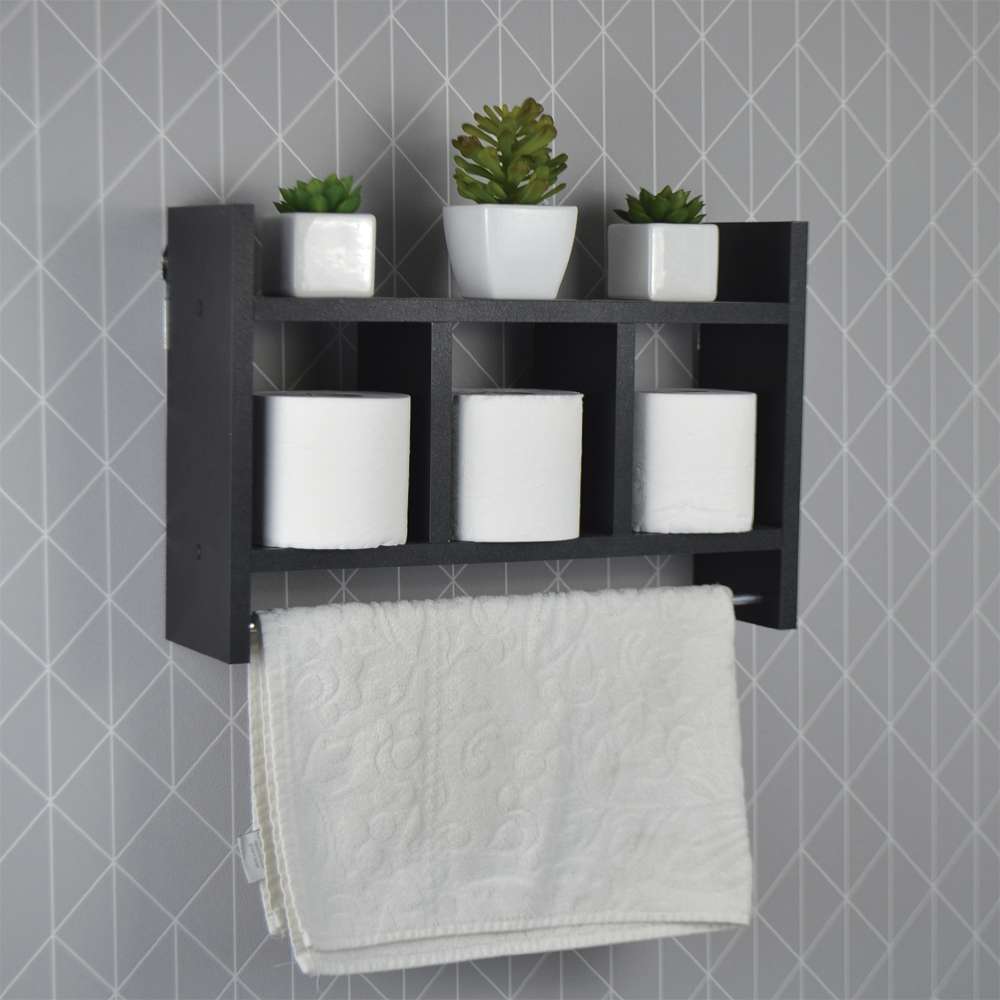 Nicho Porta Toalha Preto para Banheiro 45 x 30cm é a escolha perfeita para quem busca criatividade e organização de espaço no banheiro.